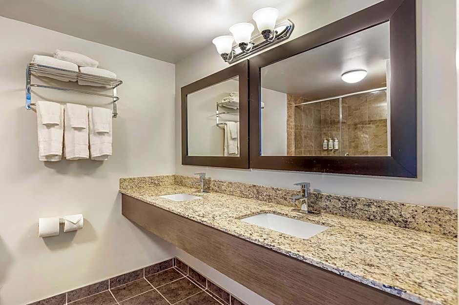 The suite offers air conditioning, as well as a private bathroom featuring a bath or a shower.